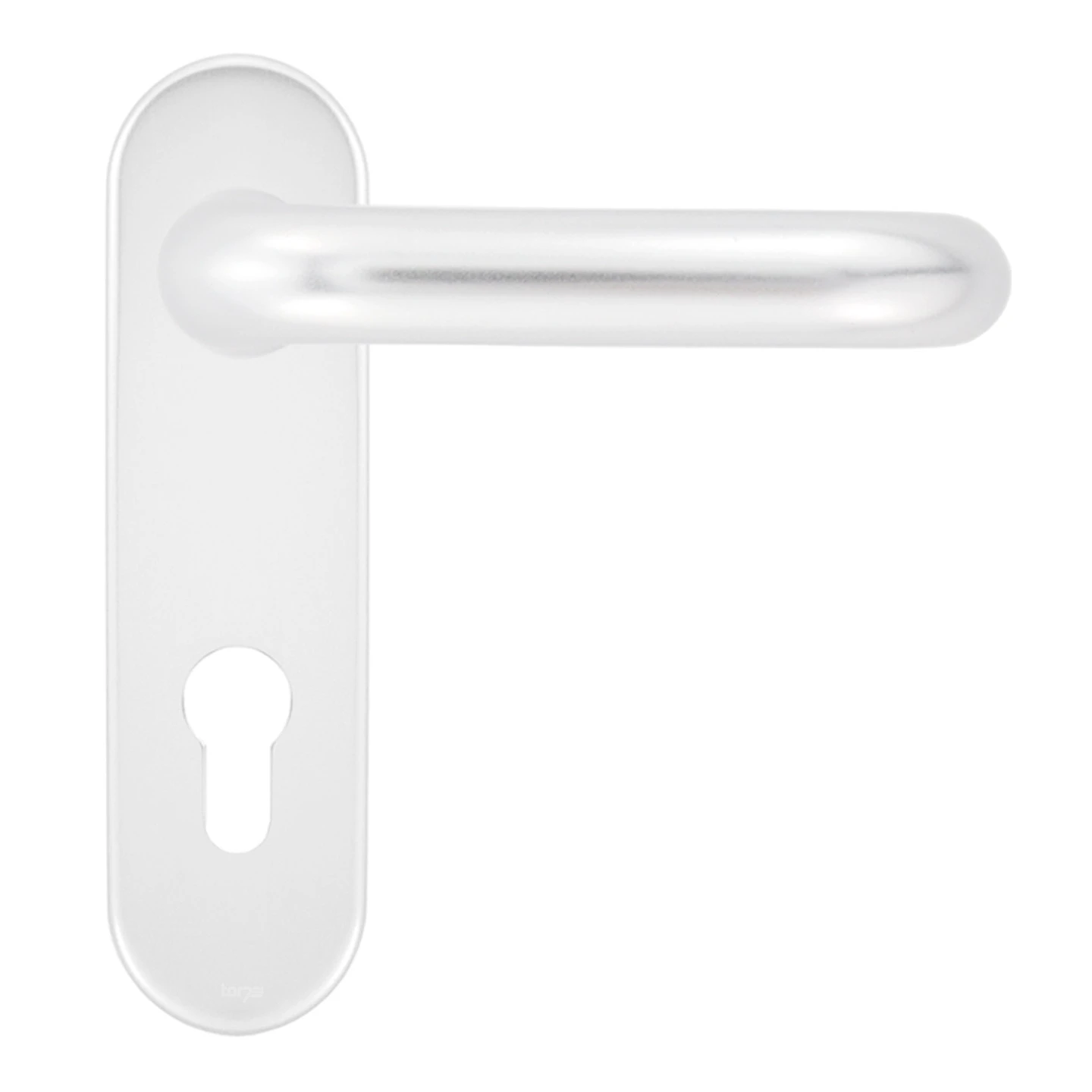 Die Hörmann Drückergarnitur mit Kurzschild und PZ-Lochung eignet sich als Ersatzgarnitur für Hörmann ZK-Innentüren oder Hörmann OIT-Objektinnentüren. An Türen dieser Ausführung kann die aus hochwertigem Aluminium bestehende Garnitur sicher verwendet und leicht ausgetauscht werden. Auch an Fremdfabrikaten mit einem 8 mm Vierkantstift, Kurzschild und entsprechender Türblattstärke lässt sich die Garnitur montieren. Der Drücker weist die typische U-Form auf und liegt somit griffig in der Hand. Die hochwertige Verarbeitung und robuste Materialien garantieren eine lange Lebensdauer auch bei starker Frequentierung.