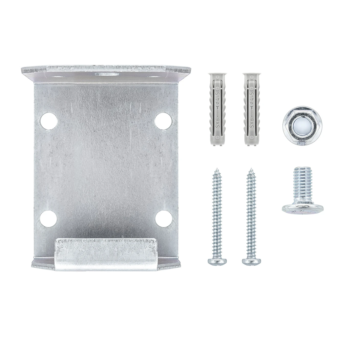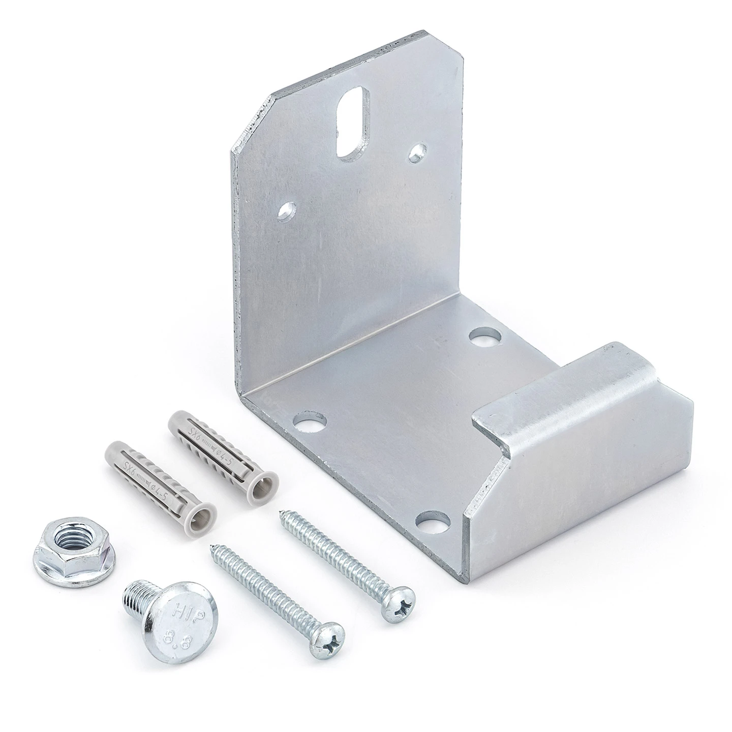 Diese Halterung kann mit Hilfe der mitgelieferten Schrauben an der Wand befestigt werden und dient damit als sichere Aufbewahrungsmöglichkeit für den Hörmann Wechselakku WA 24 V für ProMatic Akku Garagentorantriebe.