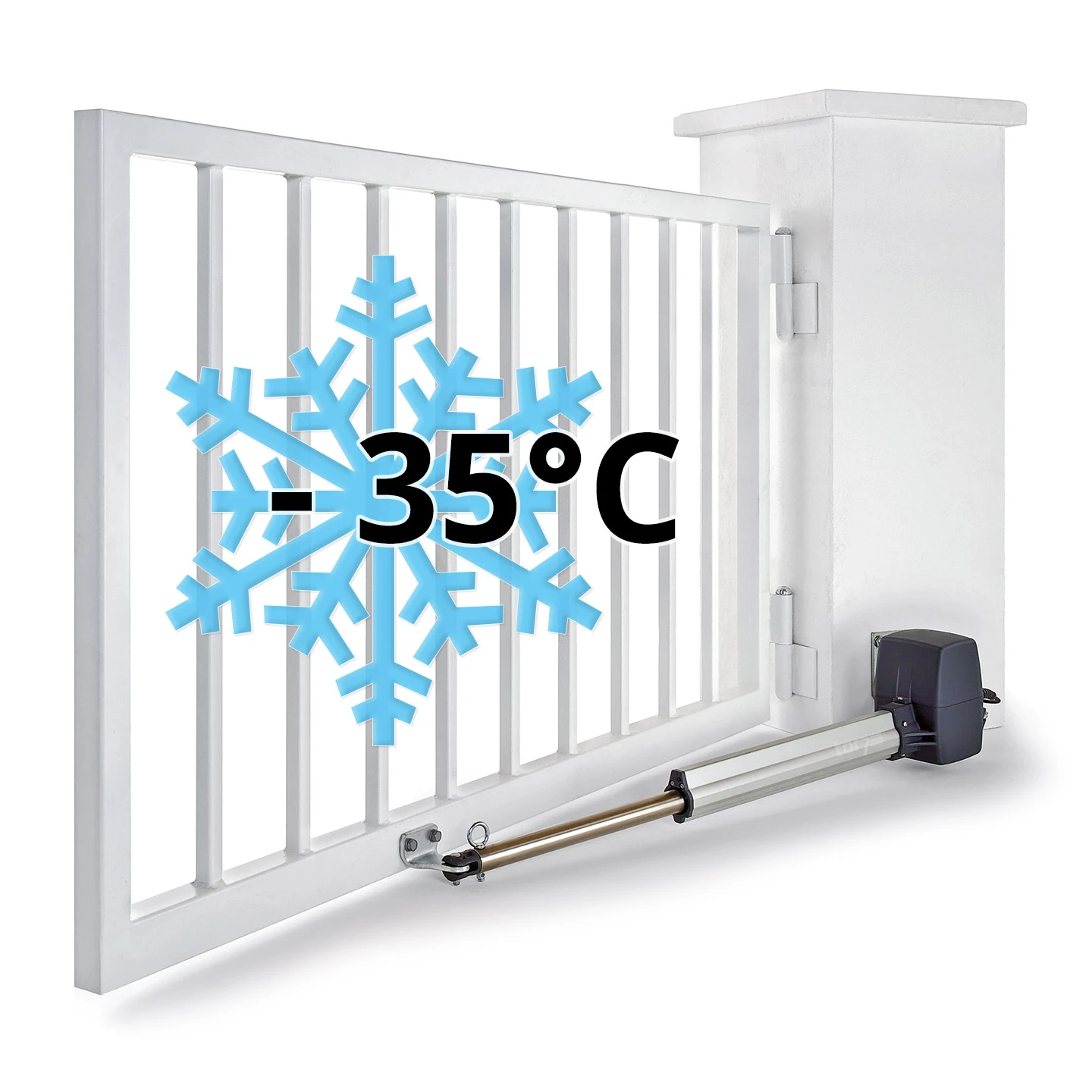 Ein elektrischer Torantrieb macht es möglich, sein Einfahrtstor ganz bequem aus dem Auto heraus zu bedienen. Dieser Komfort kann jedoch eingeschränkt werden, wenn der Antrieb bei starkem Frost festfriert. Daher wird in kühleren Regionen, etwa in Hochlagen, als Alternative ein Hörmann RotaMatic P Drehtorantrieb mit Heizung empfohlen. Die hier verbauten Antriebsprofile verfügen über eine interne Stabheizung, die bei Frösten bis zu -35 °C verhindert, dass der Antrieb durch Festfrieren blockiert.
