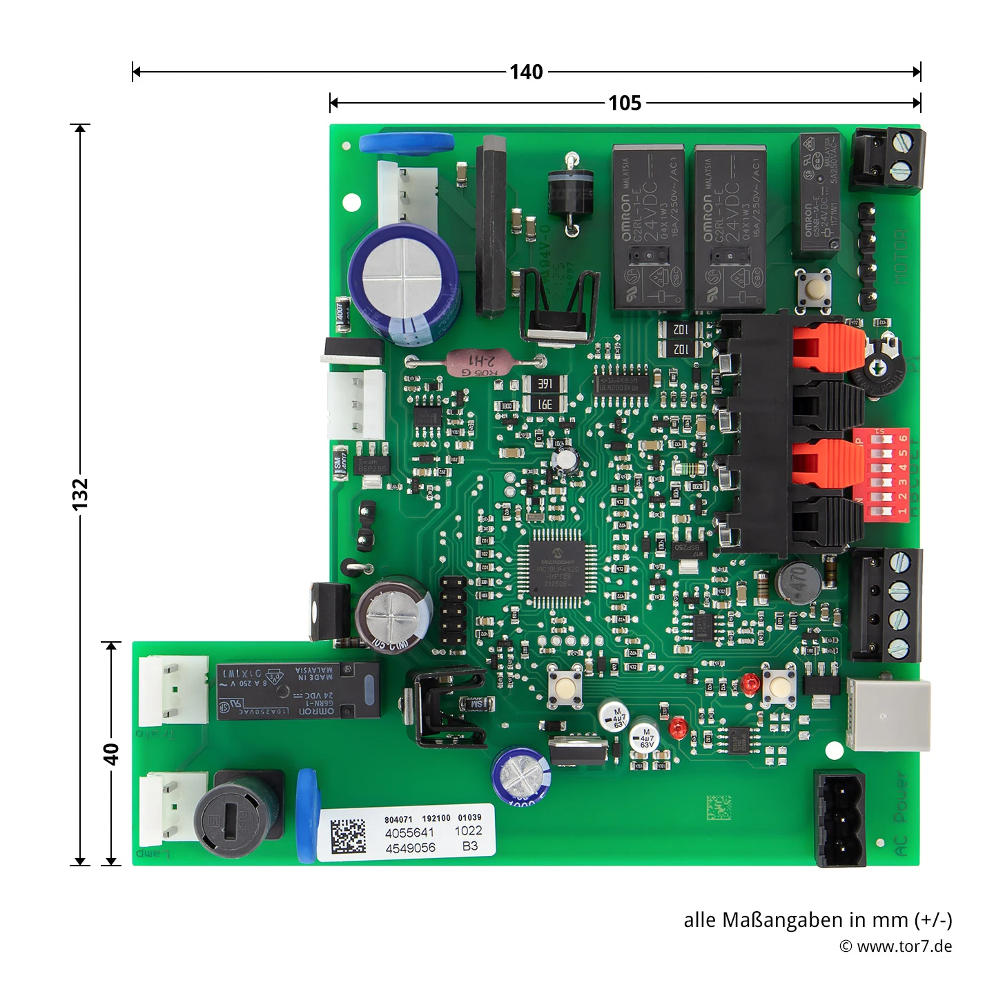 Die Hörmann Steuerungsplatine dient als Ersatzteil für die Steuerung ohne Funk bei Hörmann RollMatic Außen- und Innen-Rolltoren. Die Platine eignet sich dabei für alle Tore mit einem Produktionsdatum ab dem 01.06.2015. Auch bei älteren Rolltoren mit einem Produktionsdatum zwischen dem 01.01.2014 bis 31.05.2015 kann diese als Ersatzteil verwendet werden und ersetzt das hier genutzte Bauteil. Die Leiterplatte ist mit allen für den Torbetrieb notwendigen Anschlüssen ausgestattet und garantiert so den gewohnt sicheren, komfortablen Torbetrieb, sowie den Anschluss des gewünschten Zubehörs, wie beispielsweise dem Hörmann 3-Kanal-Empfänger HE 3, BiSecur. Der Austausch sollte von einer fachkundigen Person erfolgen.