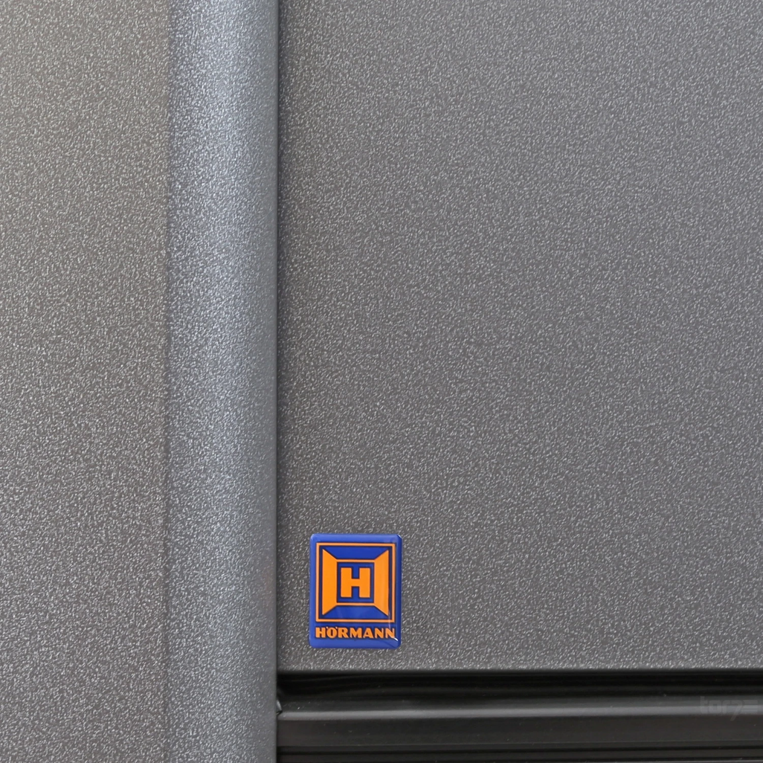 Die Hörmann Thermo65 Haustür THP 750 in exklusiver Folienbeschichtung Titan Metallic CH703 überzeugt nicht nur durch eine gelungene Ansicht, sondern auch mit hervorragenden Leistungseigenschaften in puncto Wärmedämmung, Schalldämmung und Einbruchschutz. Das formschöne Türblatt ist flügelüberdeckend, ohne sichtbaren Flügelrahmen, mit thermisch getrennten Füllungsblechen aus robustem Stahl ausgeführt. Die thermisch getrennte Aluminiumzarge im Roundstyle sorgt mit abgerundeter Außenkante für ein stimmiges Gesamtbild. Einbruchschutz und ein sicheres Gefühl vermitteln das serienmäßige 5-fach-Sicherheitsschloss und die durchgängige Sicherungsleiste auf der Bandseite.