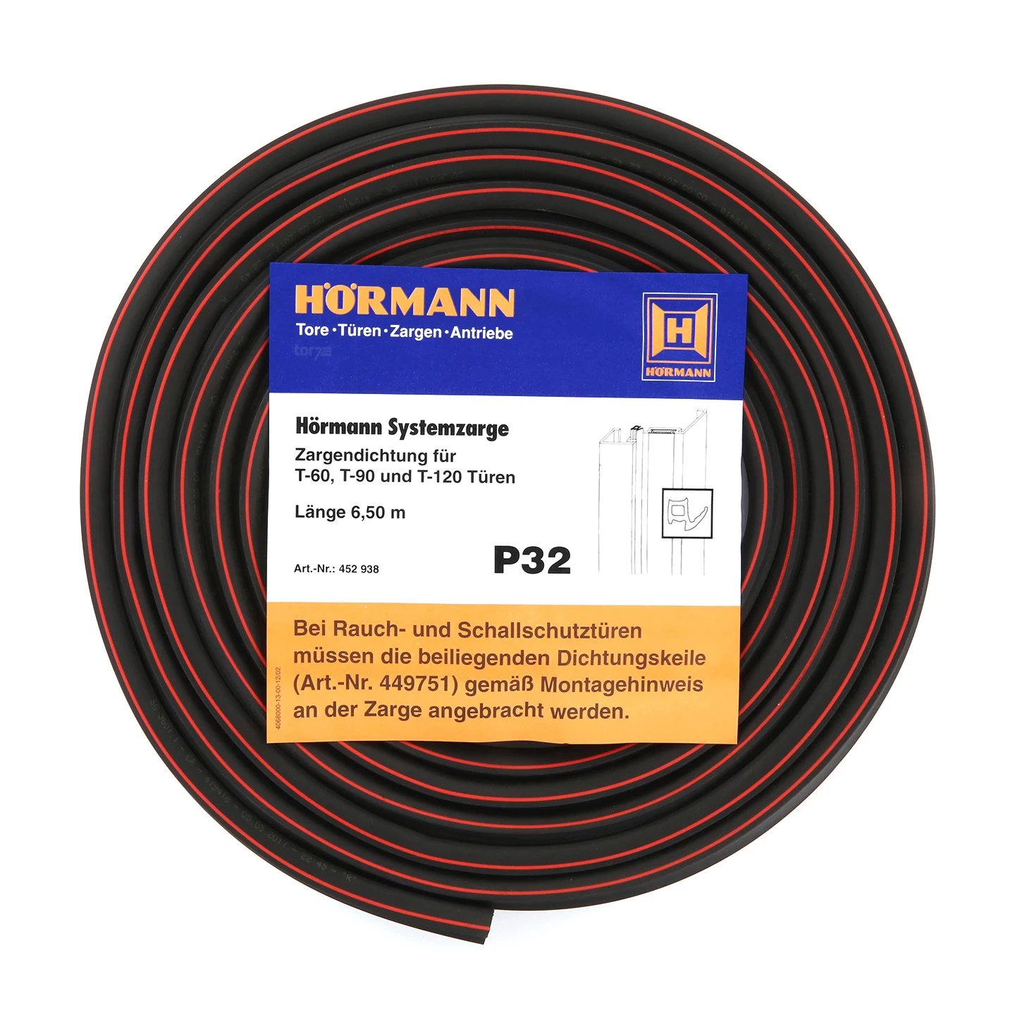 Beschreibung zu Hörmann Zargendichtung für T-60-, T-90- und T-120-Türen, P32, Länge 6,50 Meter mit Dichtungskeil
