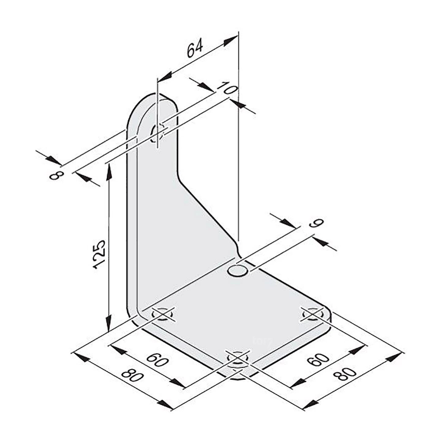 - seitlicher Befestigung zu inneren Rand Grundplatte: 64 mm