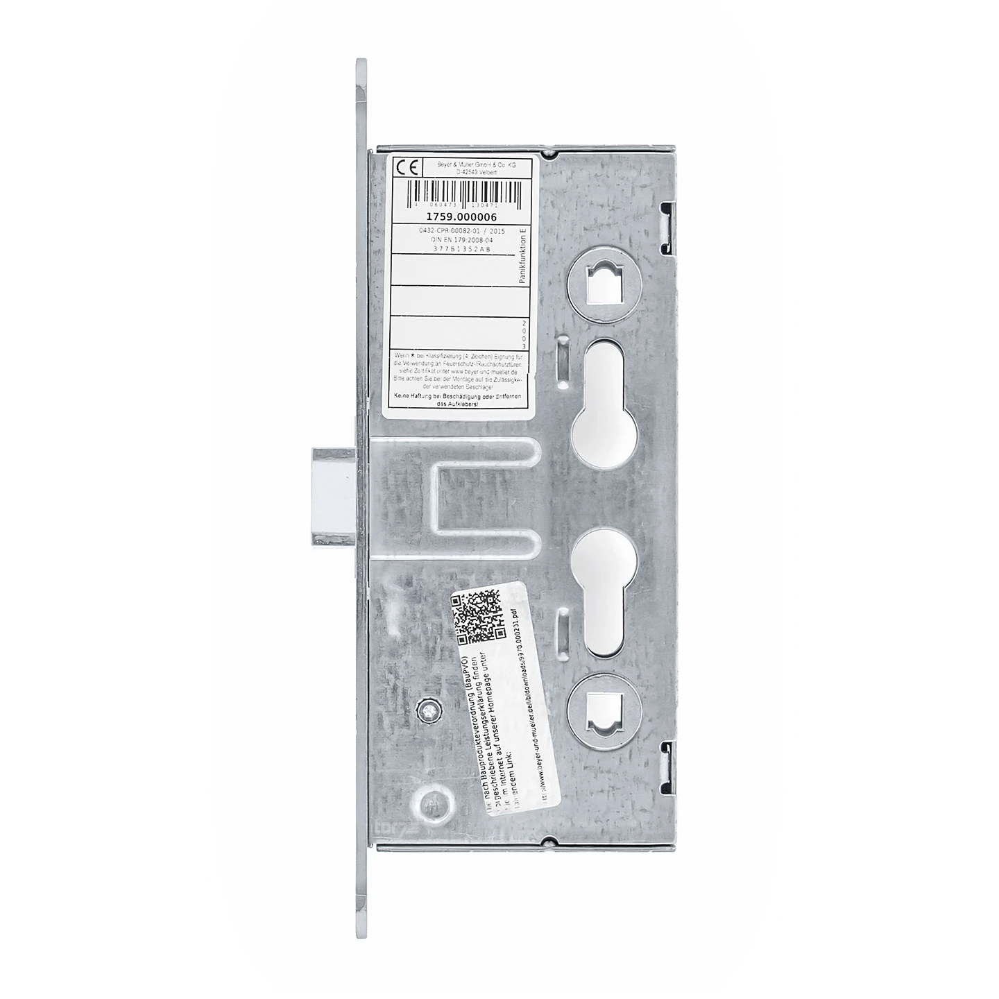 Das links/rechts verwendbare Teckentrup Einsteck-Panikschloss 1759 mit der Wechselfunktion E kann als Ersatz oder für die Erstausstattung bei Türen eingesetzt werden, die mit einer Wechselgarnitur, also einer Drücker/Knauf-Kombination, ausgestattet sind. Hierbei eignet sich diese Schlossausführung speziell für Teckentrup Stahlblechtüren mit Dünnfalz und 42 mm starkem Türblatt, wie beispielsweise der Teckentrup DW 42 oder HT 8. Die der DIN EN 179 / EN 1125 entsprechende Fluchttürfunktion gewährleistet, dass jederzeit ein Durchtritt der Tür in Fluchtrichtung auswärts möglich ist, wie beispielsweise bei Flucht- und Rettungswegen. Der fest gelagerte Knauf auf der Türaußenseite macht den Zutritt in Gegenrichtung hingegen nur mit einem Schlüssel möglich. Verwendbar ist für dieses Panikschloss jede zugelassene Wechselgarnitur, wobei durch die PZ-Lochung ein handelsüblicher Profilzylinder eingesetzt werden kann. Das Schloss verfügt hierbei über keinen Riegel, sondern wird über die Falle eintourig ausgefahren, womit eine Grundsicherheit gewährleistet ist. Durch die genormten Schlossabmessungen und eine gültige Zulassung für Brand-/Rauchschutzabschlüsse ist auch die Montage bei entsprechenden Funktionstüren sowie Fremdfabrikaten möglich.